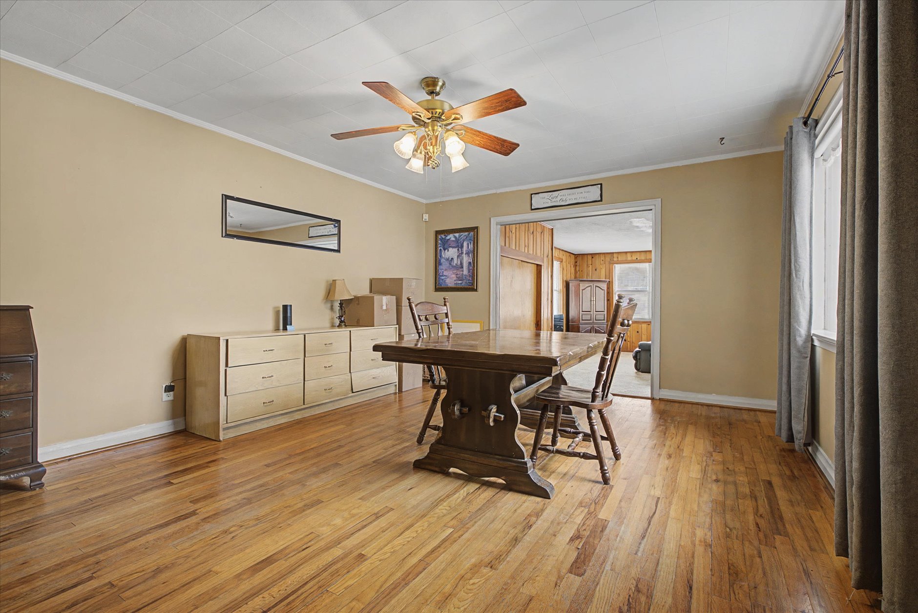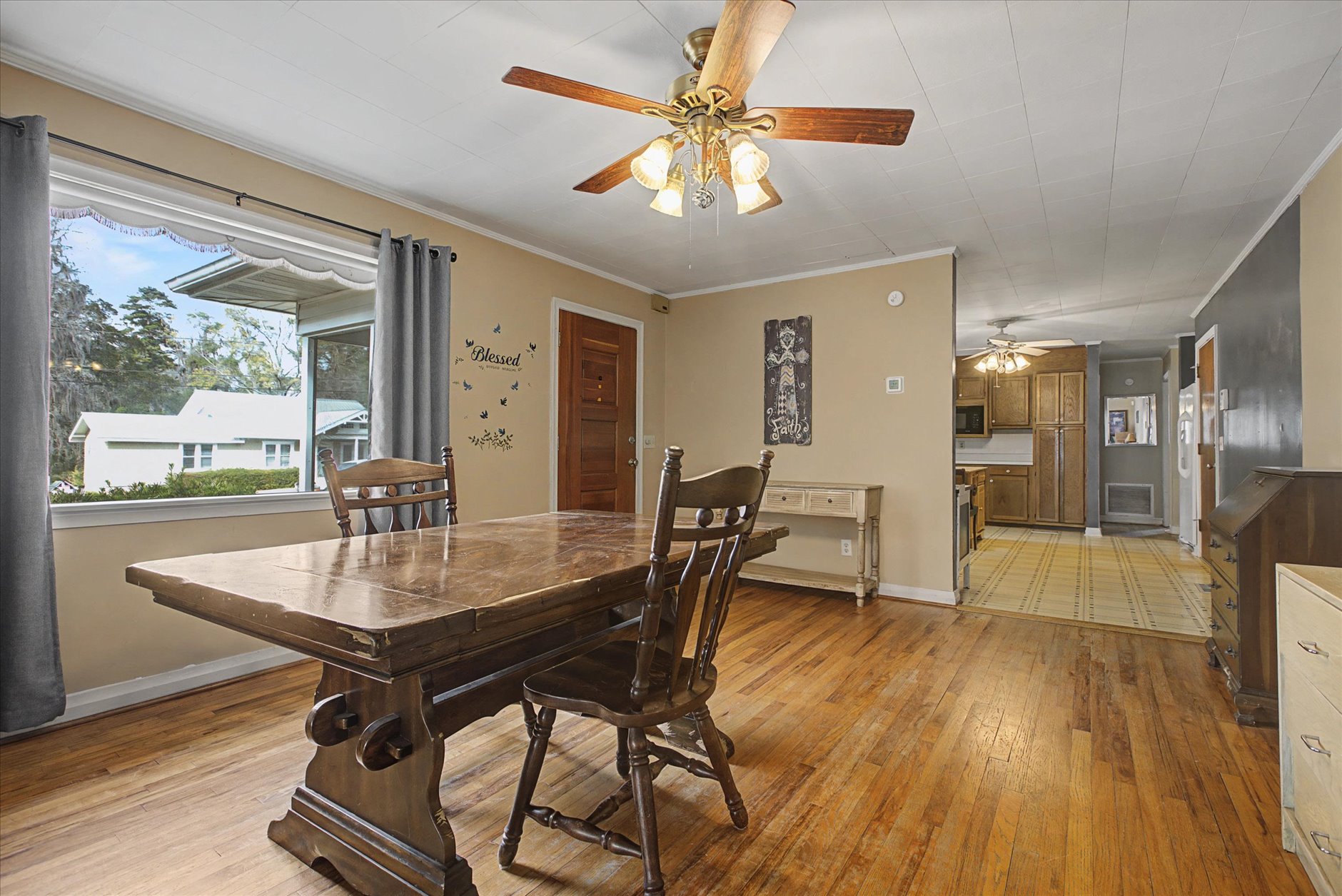 You must see this -Charming all-brick corner-lot home ideally located directly across from the Legion Hall and the entrance to Monticello Ecological Park—plus just a short walk to midtown shops and restaurants. The screened In front porch welcomes you inside. Inside, you’ll find wood floors (including beneath the carpet in the bonus room) and a layout that offers flexibility for today’s living. The oversized eat-in kitchen provides great counter space and plenty of room for hosting large family gatherings. The spacious 23x24 living room features a closet and built-ins.A standout feature is the off-grade living room, which could potentially be converted into a primary suite with the addition of a bathroom—creating a desirable 3-bedroom, 2-bath layout. The current Dining Room was the traditional formal living, which can easily be converted back to a formal living room.. Additional highlights include a large laundry room, fenced yard, and one-car garage.